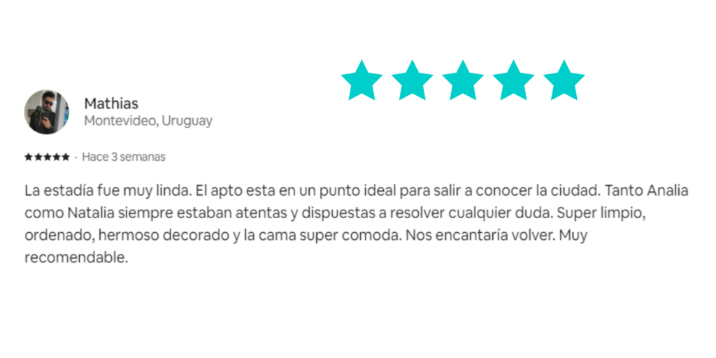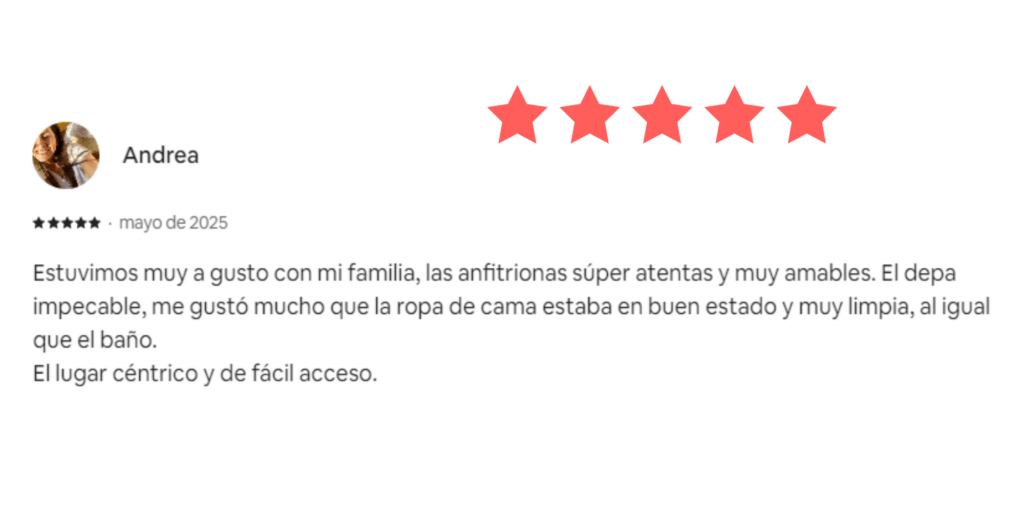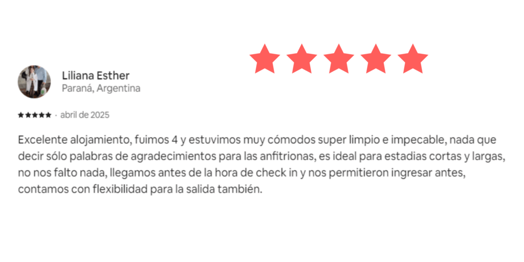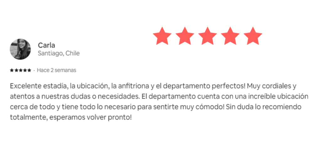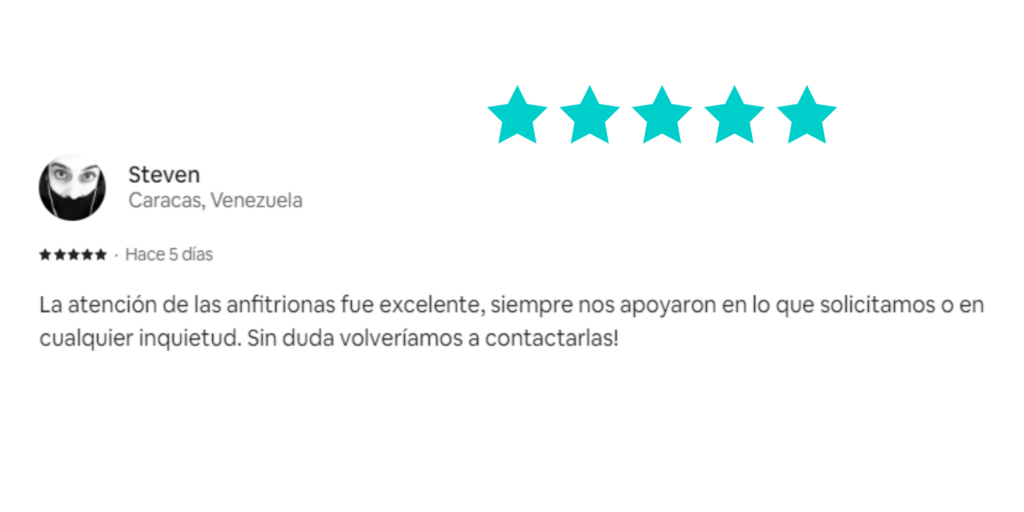 Nuestros Servicios Administración completa Sabemos que la clave para generar confianza y lograr una alta rentabilidad está en mantener una excelente calificación.Por eso, nos esforzamos al máximo para que cada huésped disfrute de una experiencia impecable desde el primer momento.A continuación, compartimos algunas reseñas que reflejan nuestro compromiso y dedicación.